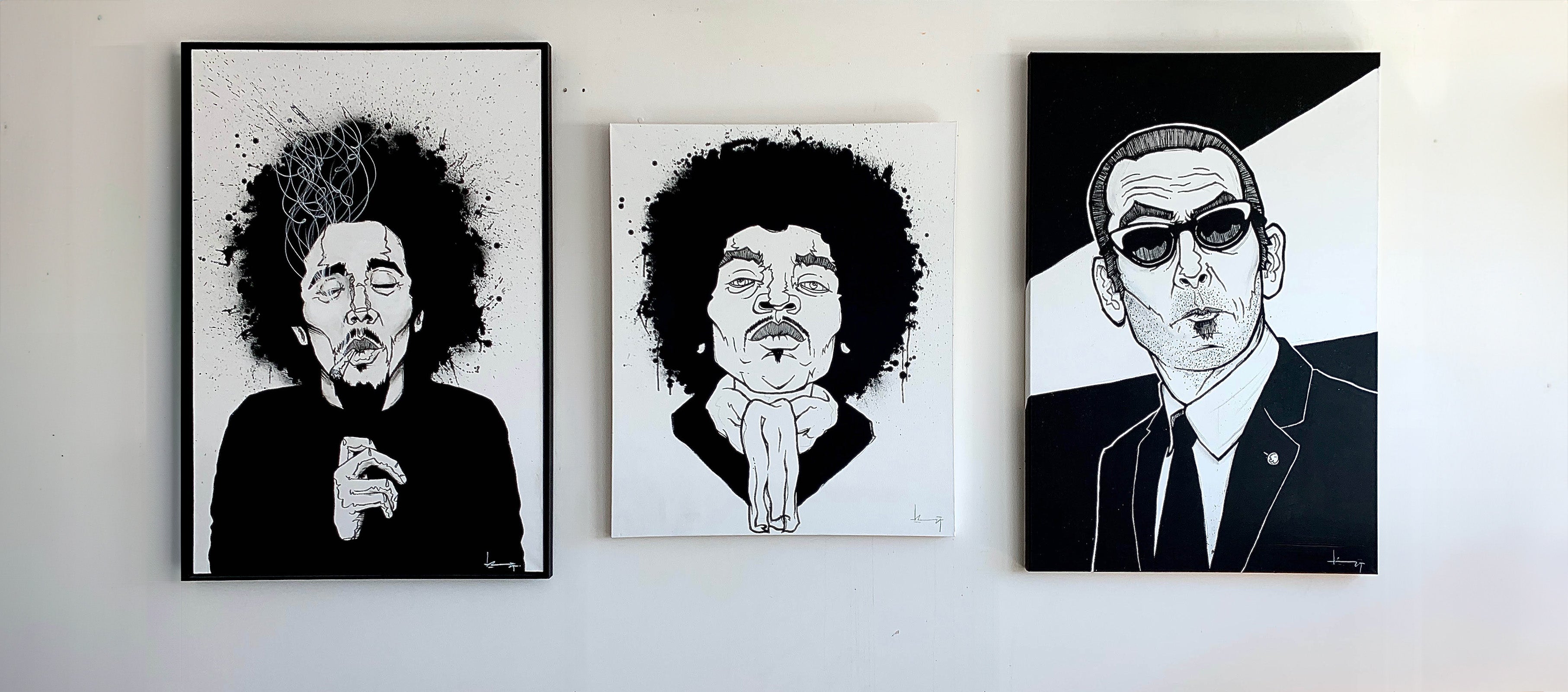 Zeefdrukken in gelimiteerde oplages, posters, illustraties en unieke schilderijen geven meer dan duizend impressies in een enkel beeld. Van fijne lijntekeningen tot krachtige portretten en van kleine tekeningen tot grote wandschilderingen.