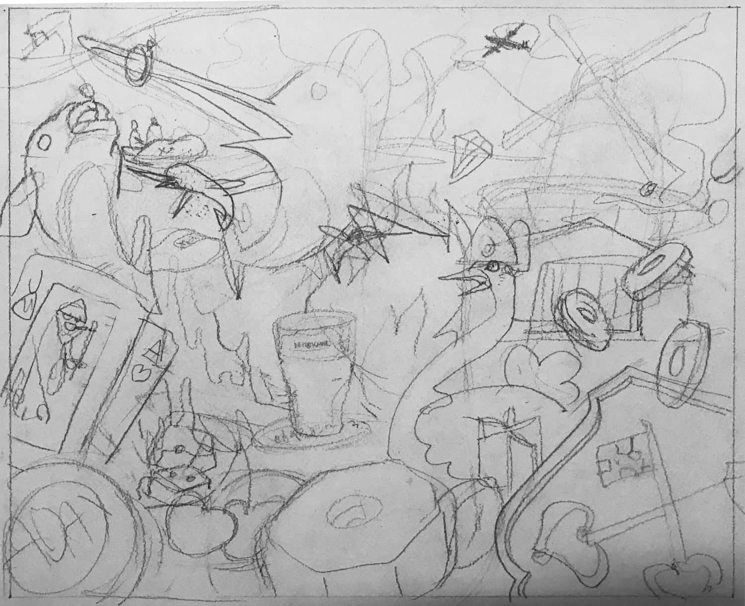 This sketch is mainly about where everything will be placed, not yet what it will look like.