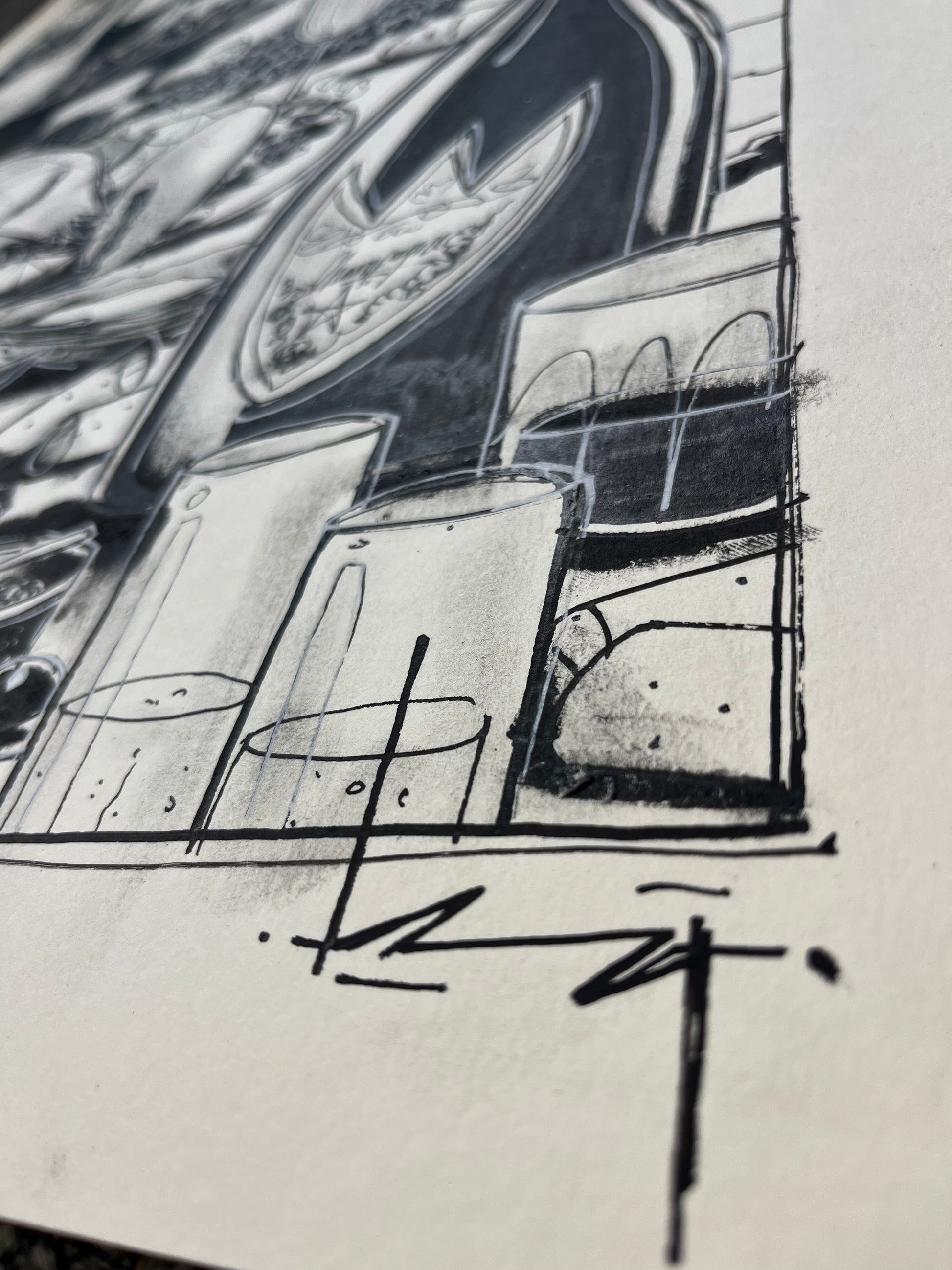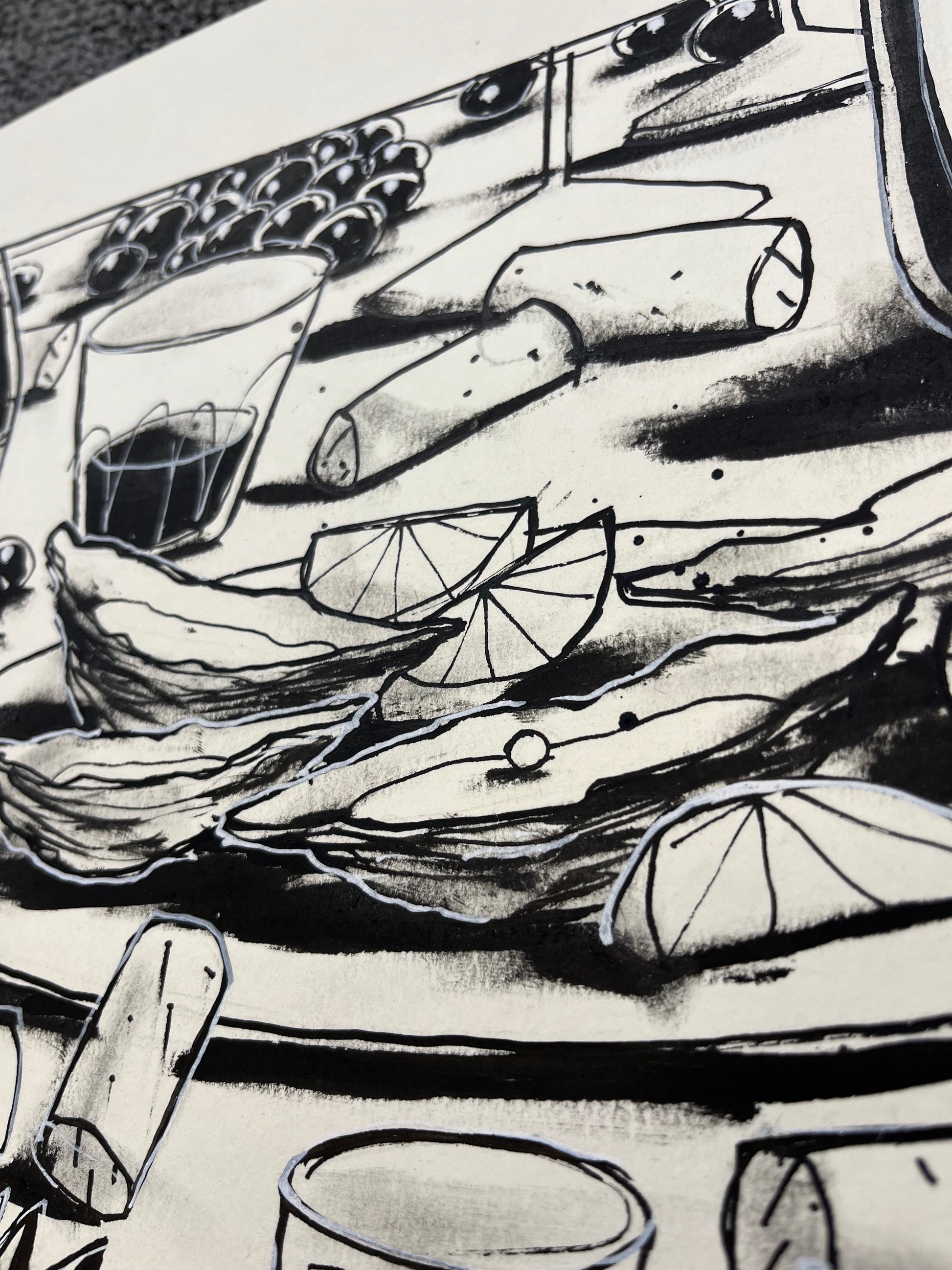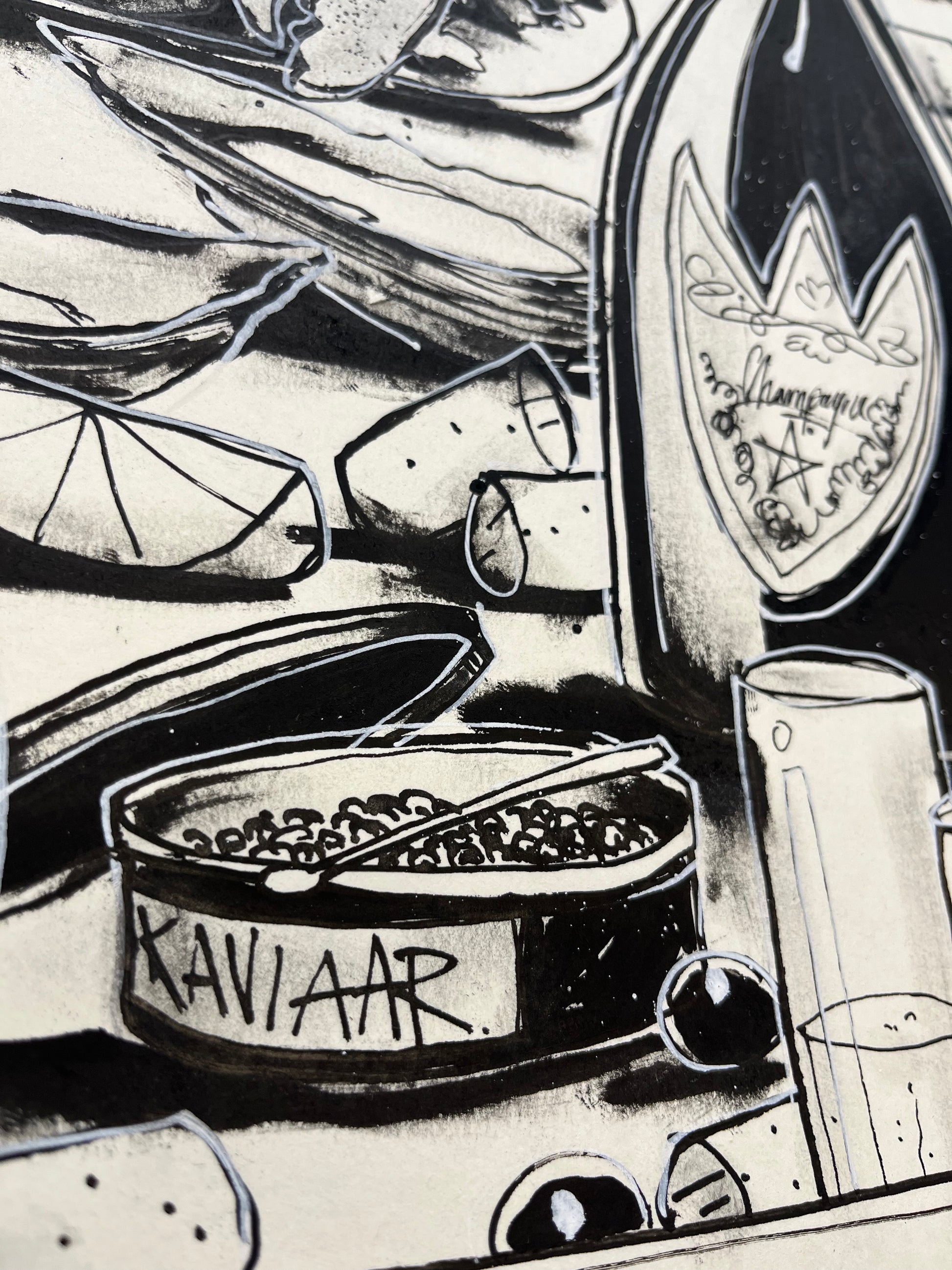 Getekend met pen en inkt op hoogwaardig 300 g/m Hahnemühle papier.