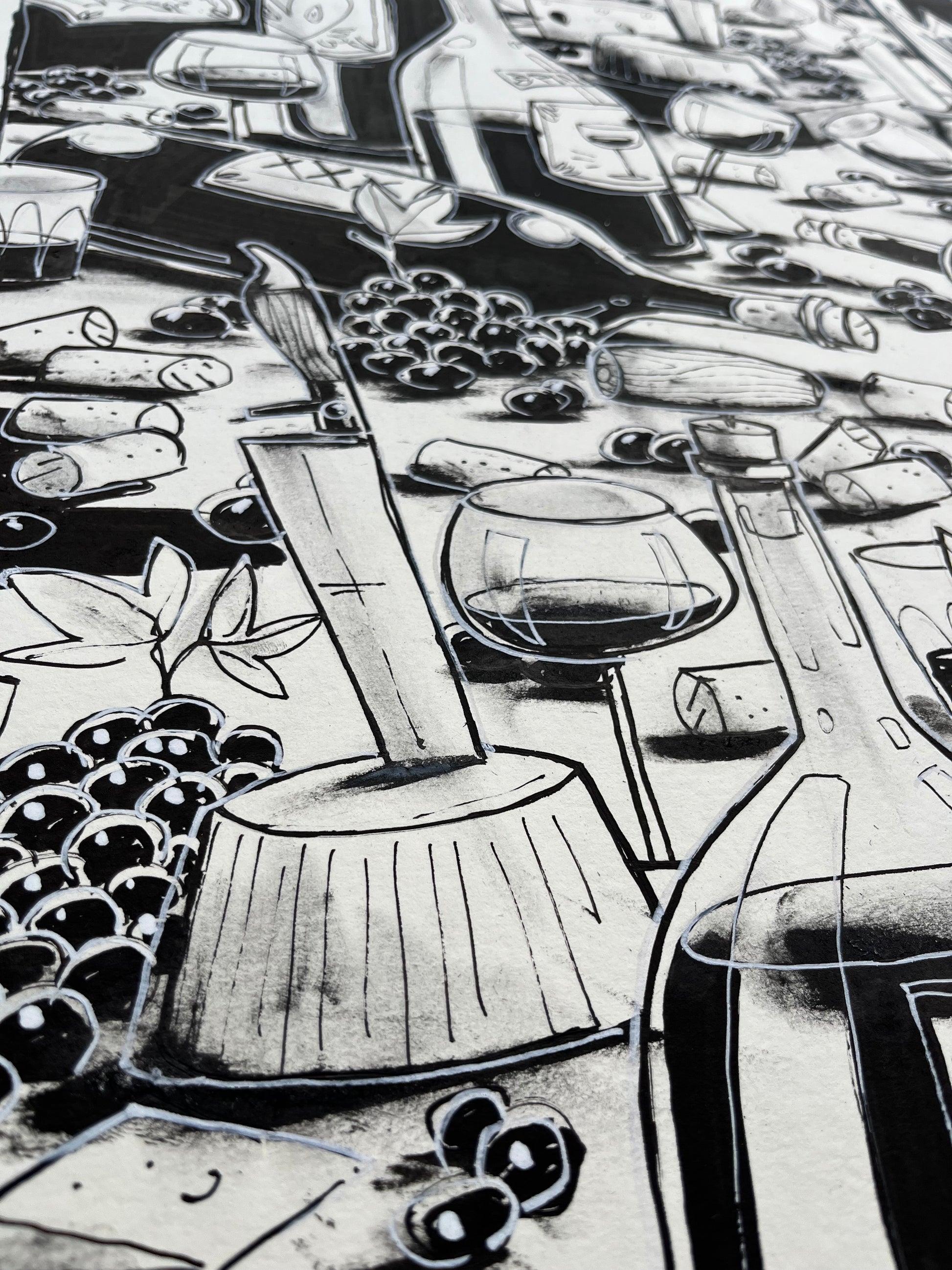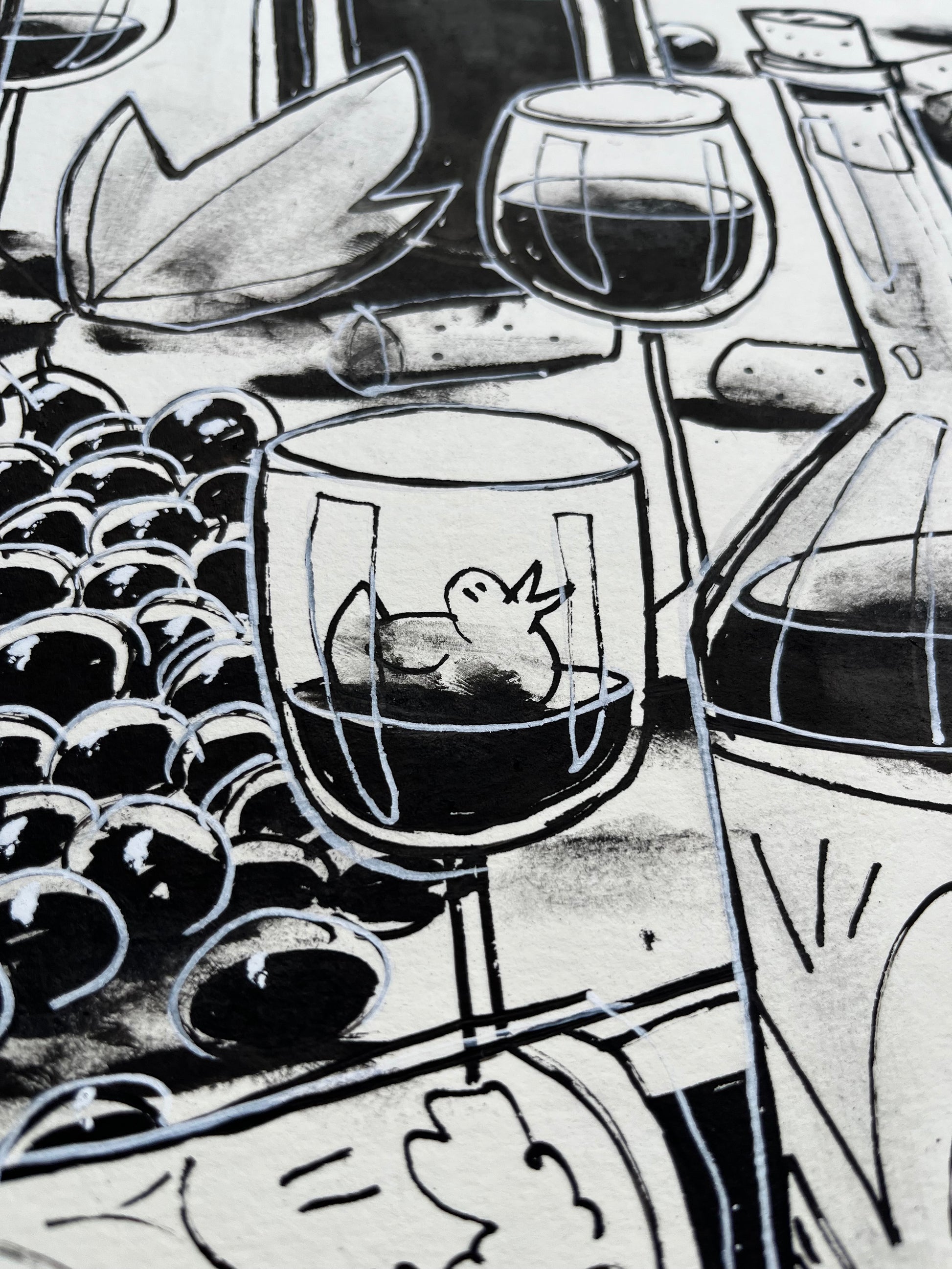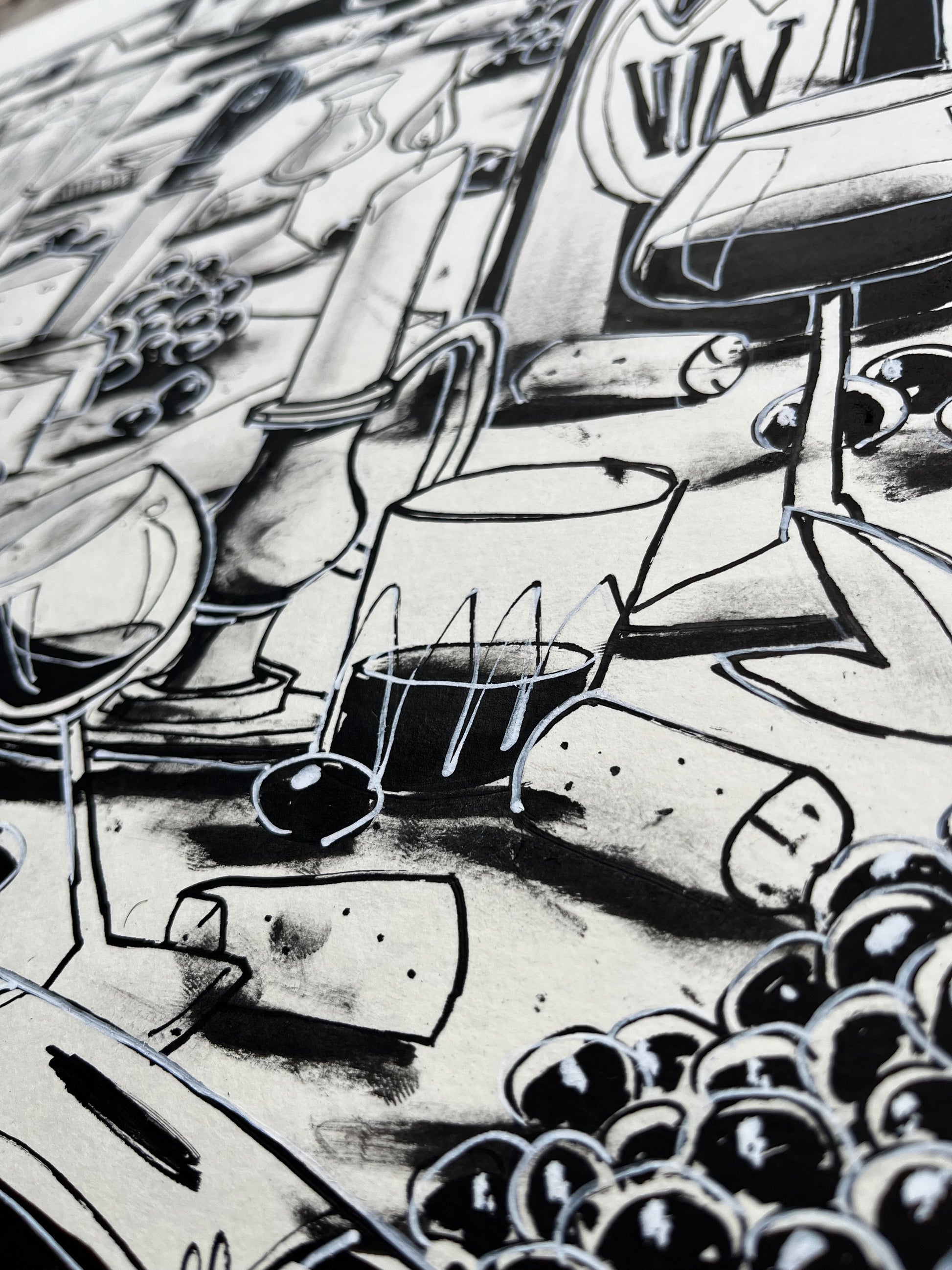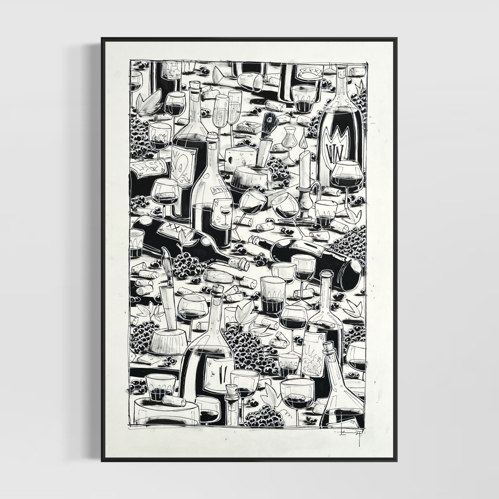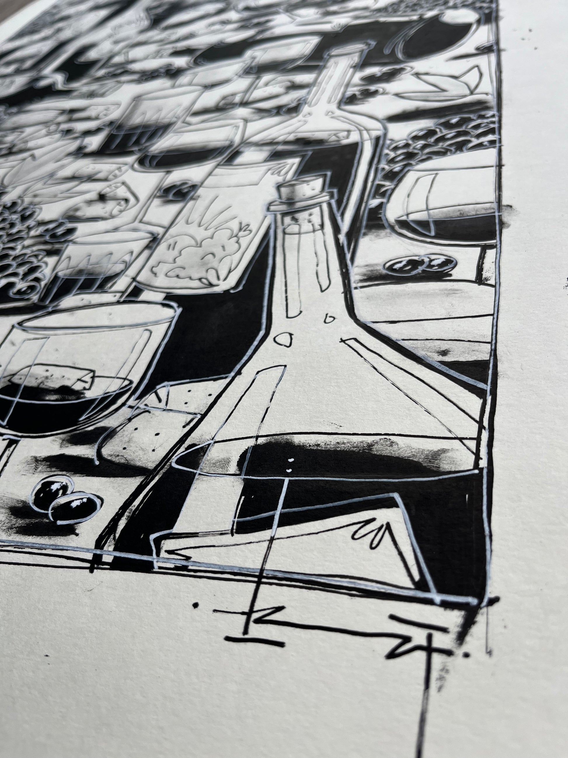 Getekend met pen en inkt op hoogwaardig, 300gr/m Hahnemühle papier.
