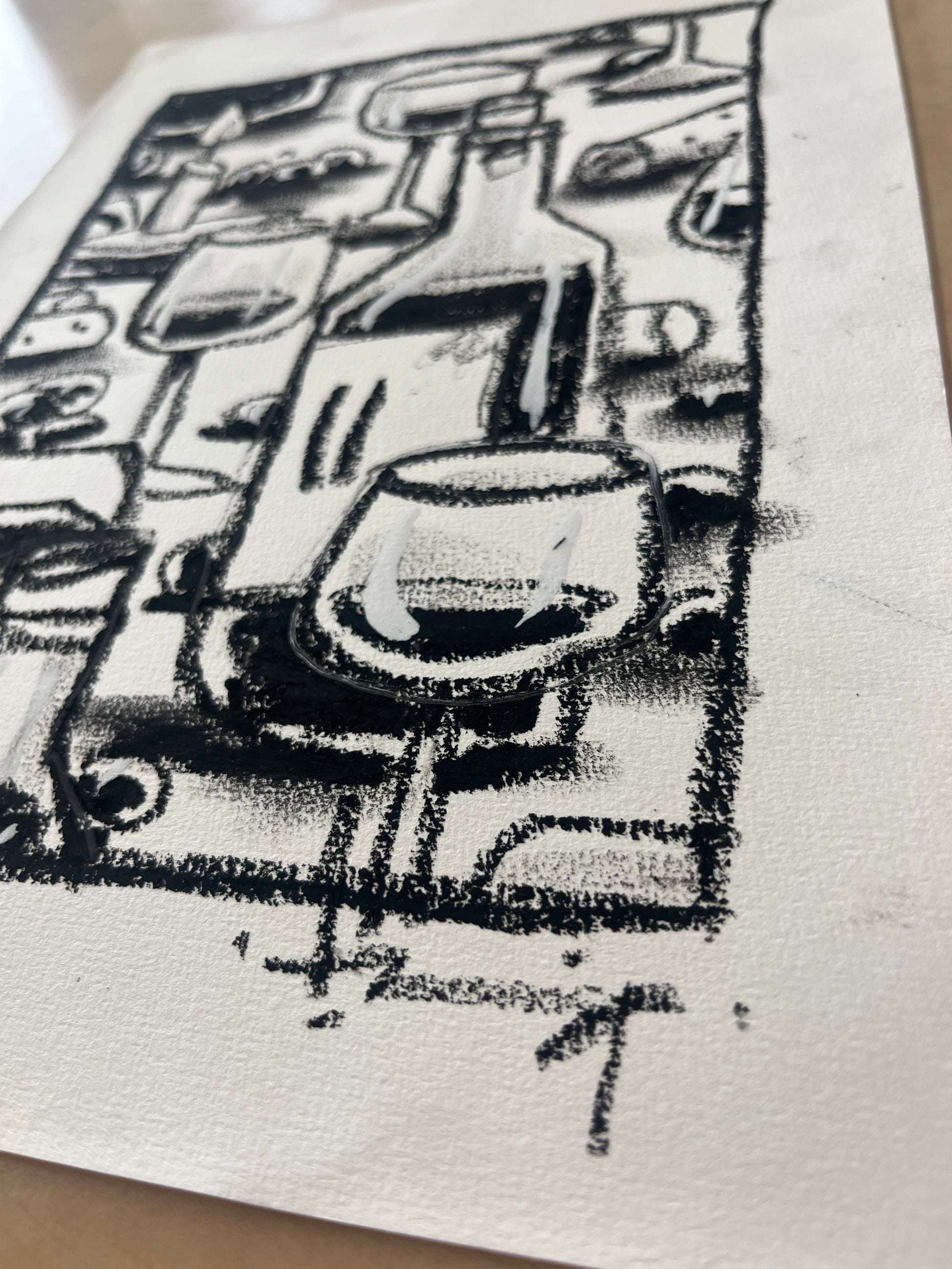 Originele tekening gemaakt met krijt en inkt