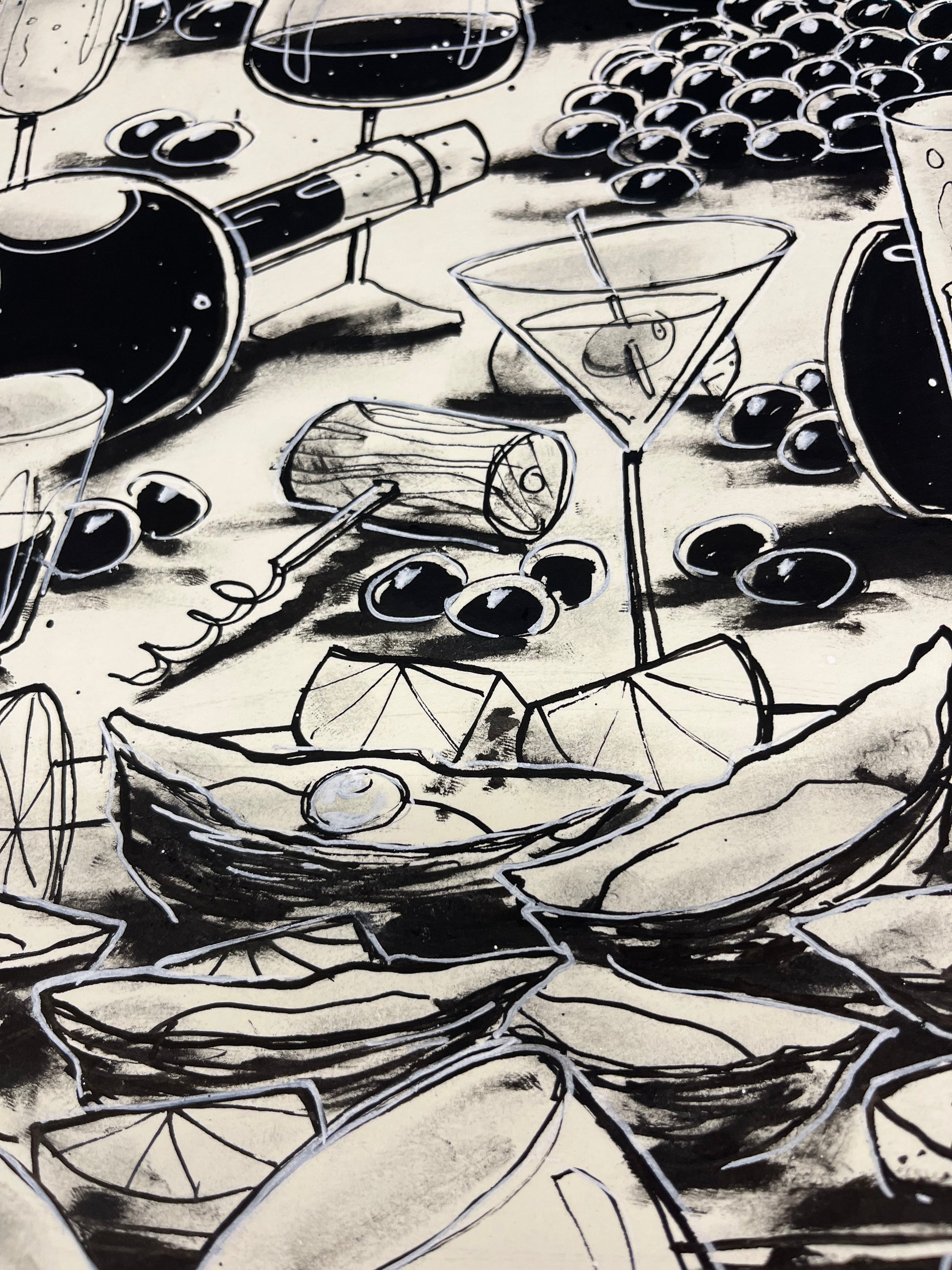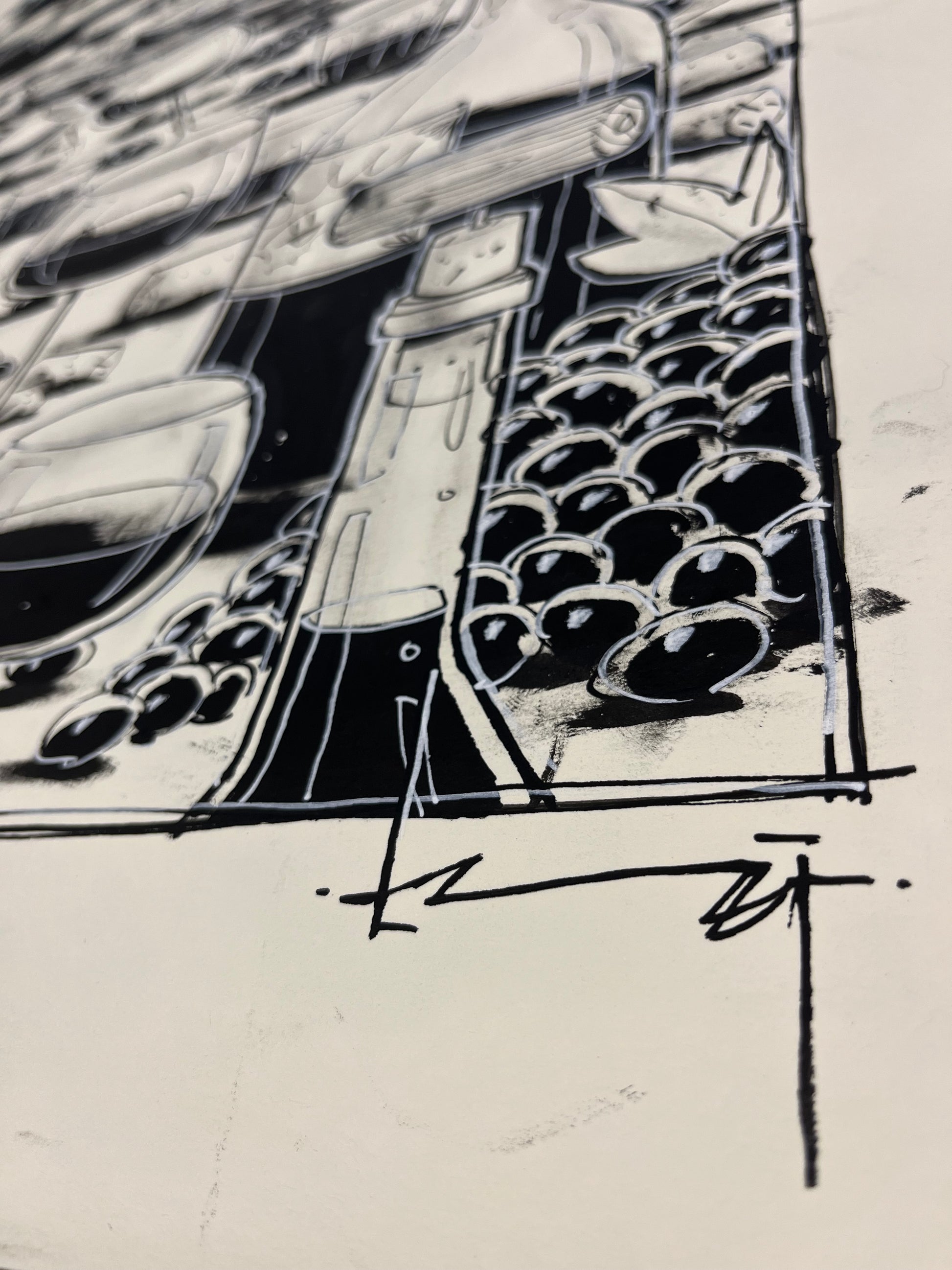getekend met pen en inkt op hoogwaardig 300 gr/m Hahnemühle papier.